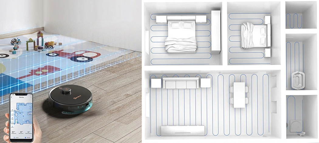Neatsvor X650 Pro on suunniteltu toimimaan juuri siellä, missä haluat sen puhdistavan lattian. Aseta sovelluksessa No-Go Zones -alueet ja seuraa robotti-imuria aina halutessasi.